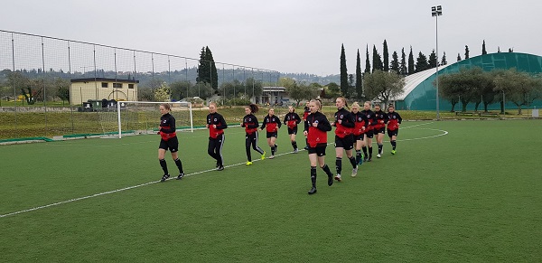 Laurdagen vart nytta til trening for gutelaget, og for jentene vart det treningskamp mot ein Sveitsisk lag. Kampen føregjekk på ei regntung grasbane i Garda, mot jenter/damer frå Sveits der den eldste spelaren var 31 år.