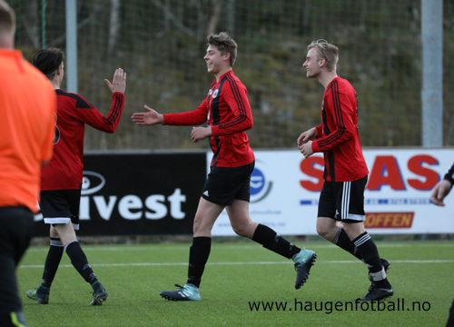 Vegard Taklo jublar etter 5-2 scoringa Foto: Stig Høynes, haugenfotball.no