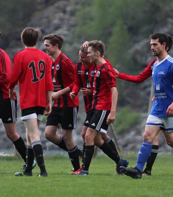 Jubel etter at Fredrik Nesje Lindvik scora kampens einaste mål. Foto: Arild Hafsås