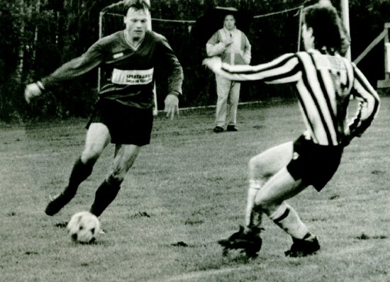 Gunnar spelte på Skeid i 83 og 84. Han hadde også tilbud frå Kongsvinger og han prøvespelte for Ham-Kam. I bakgrunnen på bildet ser vi Sverre Heggen, han trena HIL ein periode på midten av 70-talet.