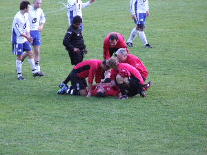 2min :Gedingen sjanse til Hornindal, ved Håvard. Han får ballen frå eit innleg frå cirka 16meter, og headar ballen nokre få centimeter over mål. I det han headar får han eit ublidt møte med Selje keeperen men han er raskt på beina att.
