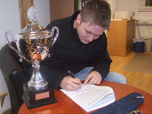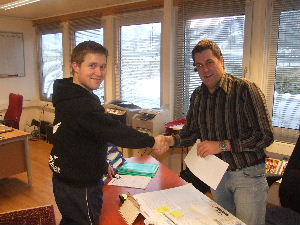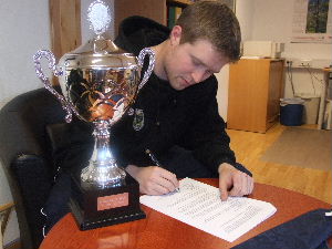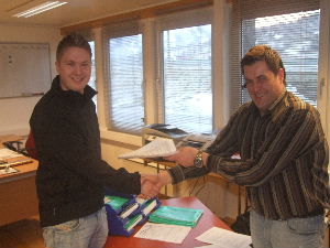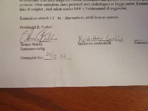 I dag signerte Kristoffer Grodås og Sindre Fannemel ny kontakt med HIL. Den høgtidlege signeringa fann stad på kontoret til sportslegleiar Steinar Bakka. Kristoffer og Sindre er klar for ny trofejakt med HIL. Begge kontraktene strekke seg over 2 år. Kristoffer har sidan han spelte for Stryn i 2005 vore plaga med eit kne, men han reknar med at han skal vere klar til seriestart. Sindre som er en del av den gyldne 86-årgongen har dei siste sesongane vore lite disponibel pga militæret og skule, men no blir det altso andre bollar;) Her er Kristoffer i ferd med å signere kontrakta. Sindre med fullt fokus på pennen. Både han og Sindre bur og studerar i Bergen, og begge er innstilde på å sette seg i bilen kvar helg for å kome heim å spele for HIL sitt herrelag. Dette vil utan tvil vere ei stor styrke for HIL i sesongen som kjem. HIL vil no få på plass ein klubb dei kan trene med i Bergensområdet. Samstundes held styret med å jobbe for å få til seg fleire spelarar. Fleire glimt frå den høgtidlege signeringa i dag.