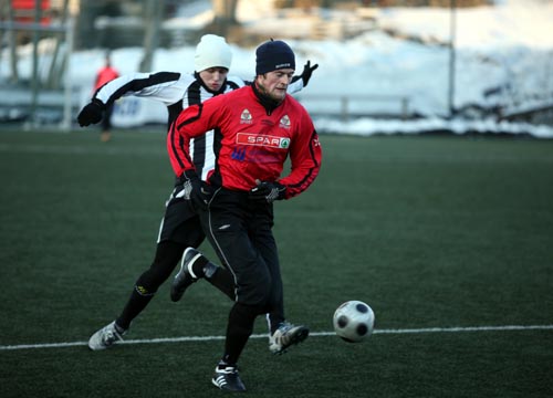 Herrelaget hadde si fyrste økt utafor gymsalen fredagskvelden so spel på stor flate var vi litt rustne på, men ikkje verre en at vi til slutt vann en komfortabel og fortjent 4-2 siger.