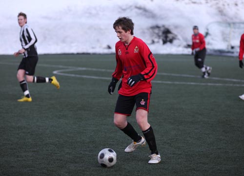 Emil Allesøe (bildet) som spelte sin fyrste kamp for HIL, skrudde ein corner direkte i mål og HIL leia dermed 1-0 når det var spelt 7 min. Han er ikkje formelt klar for HIL, men både vi og Emil reknar med at han formelt blir speleklar i nær framtid.