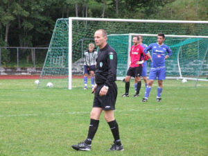 Rune Haugland dømmer kampen mellom Hornindal og Sæbø laurdag.