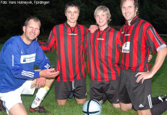 Laurdag blir det blir gjensyn med Terje Haugen Øye (nr 2 frå venstre) Han er spelande trenar for Sæbø denne sesongen.