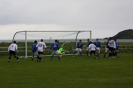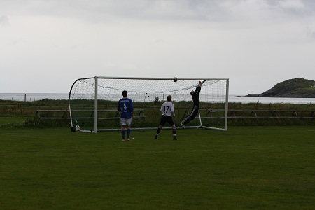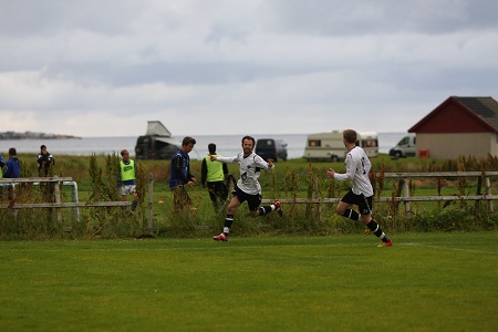 Kristoffer Djuvik banka ballen i tverrliggaren i 1.omgong.