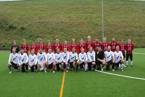 Lagbilde før kampen. Alle var like blide når kampen var over :)